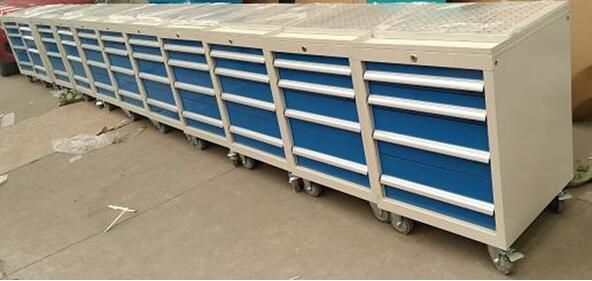 工具車(chē)在加工企業(yè)中要有便于存放工具、量具,提高工作效率降低工位勞動(dòng)強度的效果。.裝有優(yōu)質(zhì)軸承的導軌,保證單個(gè)抽屜承受額定載荷時(shí)亦能輕松順暢開(kāi)合。工具車(chē)的抽屜內自由調節的隔板,能使您隨意分隔儲物空間。工具車(chē)抽屜把手及可換的標簽,美觀(guān),方便,實(shí)用。